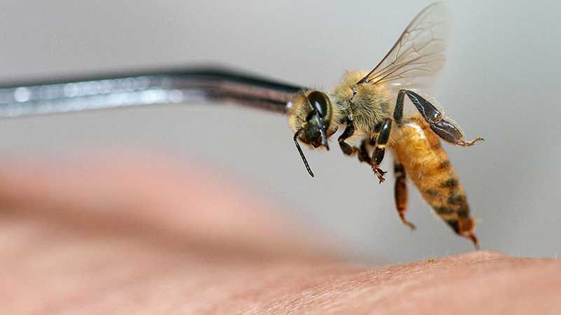 لازم به ذکر است که اگرچه زنبوردرمانی شامل استفاده از محصولات زنبور است، این کلمه بیشتر در ارتباط با درمان با سم زنبور است و نه استفاده از عسل یا دیگر محصولات زنبور. ادعا میشود که درمان با نیش زنبور برای آرتریت، بورسیت، تاندونیت، هرپس زوستر در کنار دیگر بیماریها کاربرد دارد. فراوانترین جز فعال سم زنبور ملیتین(Melittin)است که فعالیت ضدالتهابی قوی دارد. سم زنبور مخلوط پیچیدهای از پپتیدها و پروتئین های متنوع است که برخی از آنها برای سیستم عصبی و سیستم ایمنی بدن اثرات سمی دارند.
